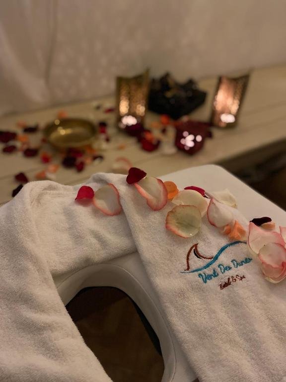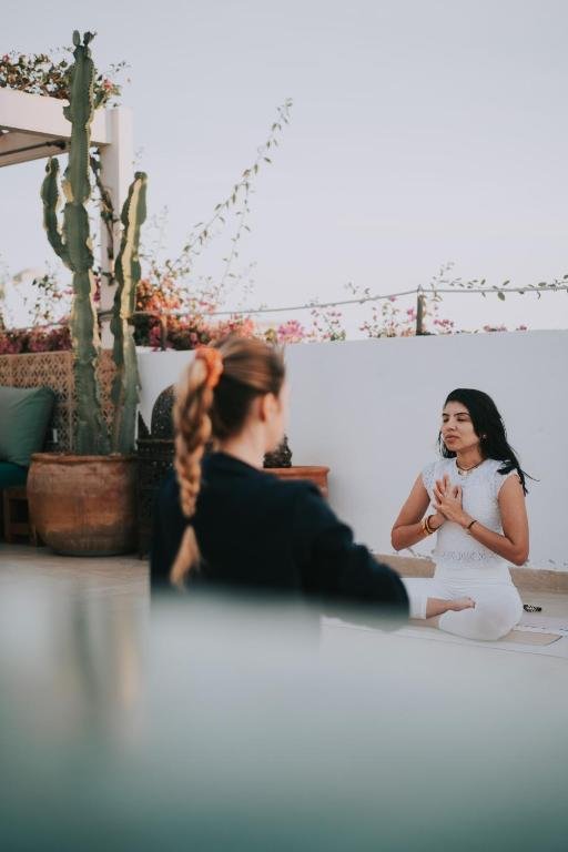 Le Vent des Dunes sert le petit-déjeuner sur la grande terrasse qui donne sur la ville, et vous pourrez déguster une cuisine marocaine traditionnelle sur demande. Vous pourrez également explorer le jardin de l’hôtel, profiter de la petite piscine, d’un soin au spa ou vous détendre avec un thé à la menthe sur le toit.